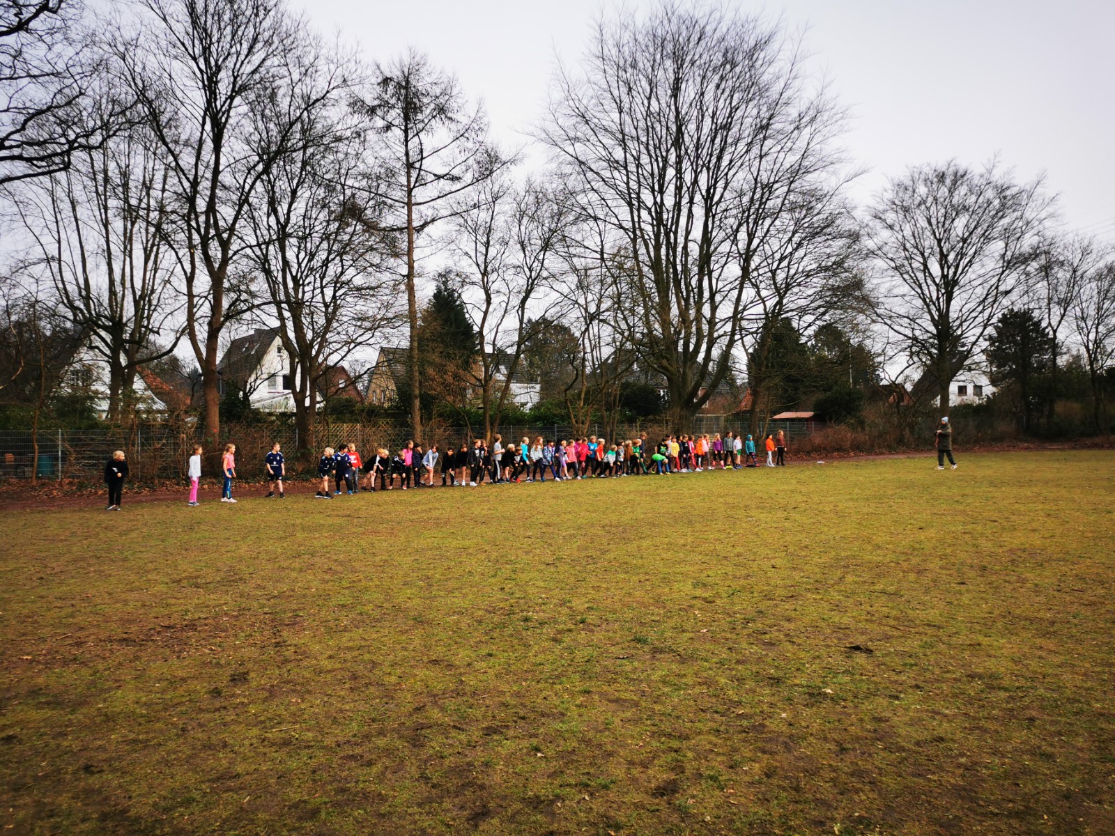 Die diesjährige Beteiligung übertrifft sogar noch die der vorangegangenen Jahre: Es gibt aktuell 100 Anmeldungen und die meisten der angemeldeten Kinder haben sich am Montag um 13 Uhr in der Sporthalle getroffen. Die Stimmung war hochmotiviert und fröhlich. In zwei Gruppen wurden in der Halle und auf unserem Sportplatz erste Runden unter der Aufsicht der zwei versierten Trainer (Herr Nehls – Vater zweier Kinder in Jahrgang 2 und Herr Behrens – Sportlehrer unserer Schule) gelaufen.