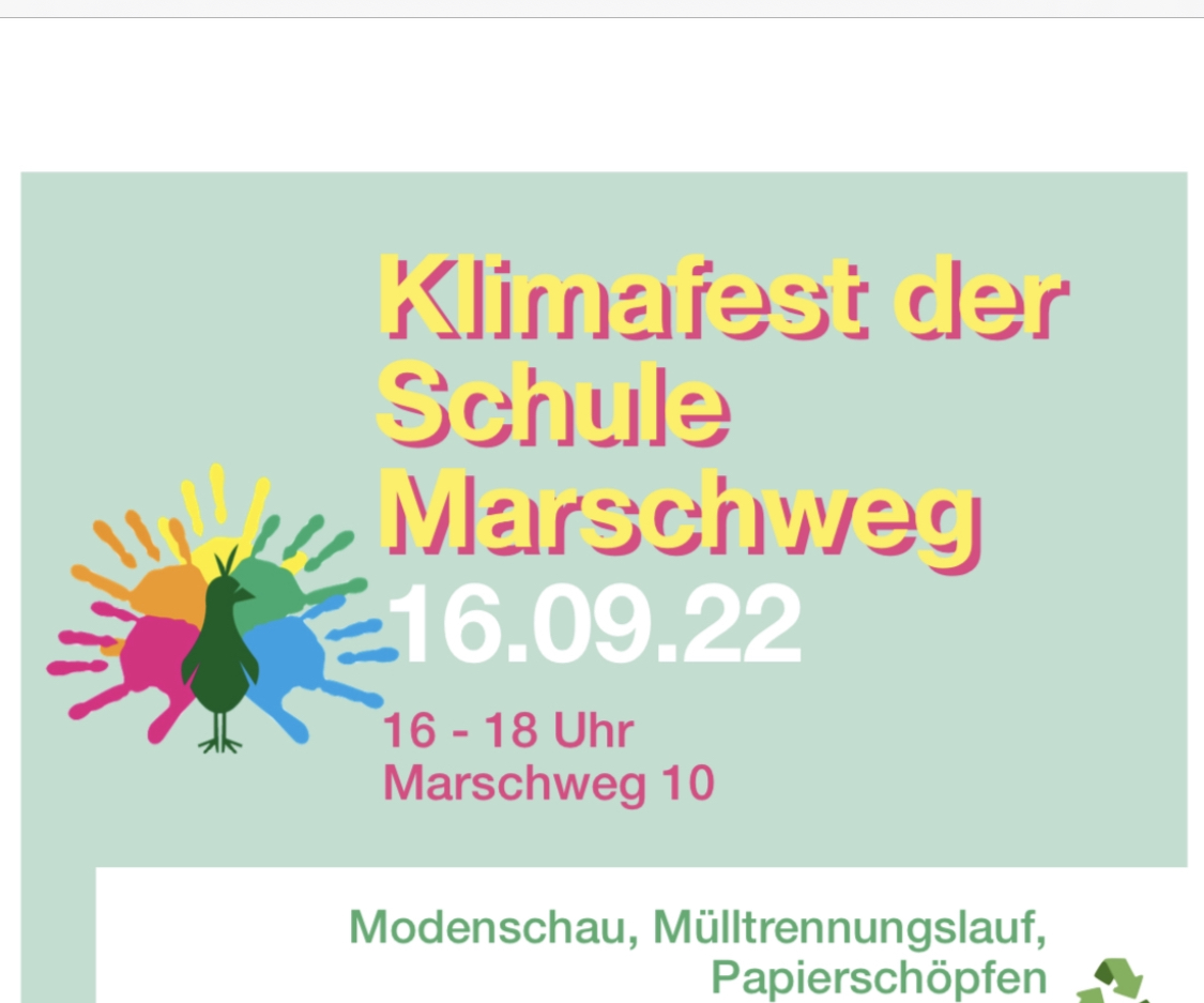 Am Freitag konnten ein wunderbares Klimafest mit der ganzen Schulgemeinschaft feiern! Unser Fest war aufgrund der Wetterlage zugleich ein „Tag der offenen Tür“. So hatten Sie Einblicke in die Klassen und konnten wieder „Marschwegluft“ schnuppern!Trotz Regen und dunklem… Read More