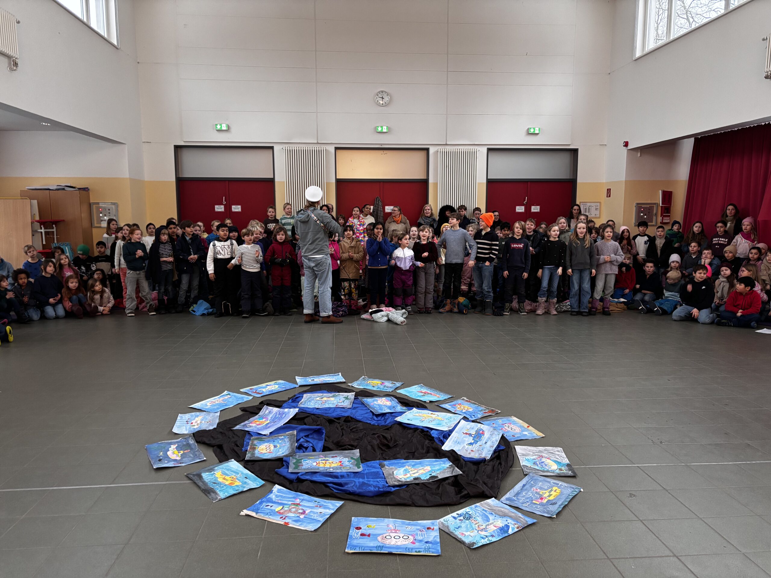 Zum Abschluss der Versammlung wurde Herr Reble verabschiedet. Gemeinsam mit den zweiten Klassen stand er als Kapitän vom „Unterwasserboot“ in der Aula. Die Schulgemeinschaft bedankte sich herzlich für sein Engagement und wünschte ihm alles Gute für den weiteren Weg.