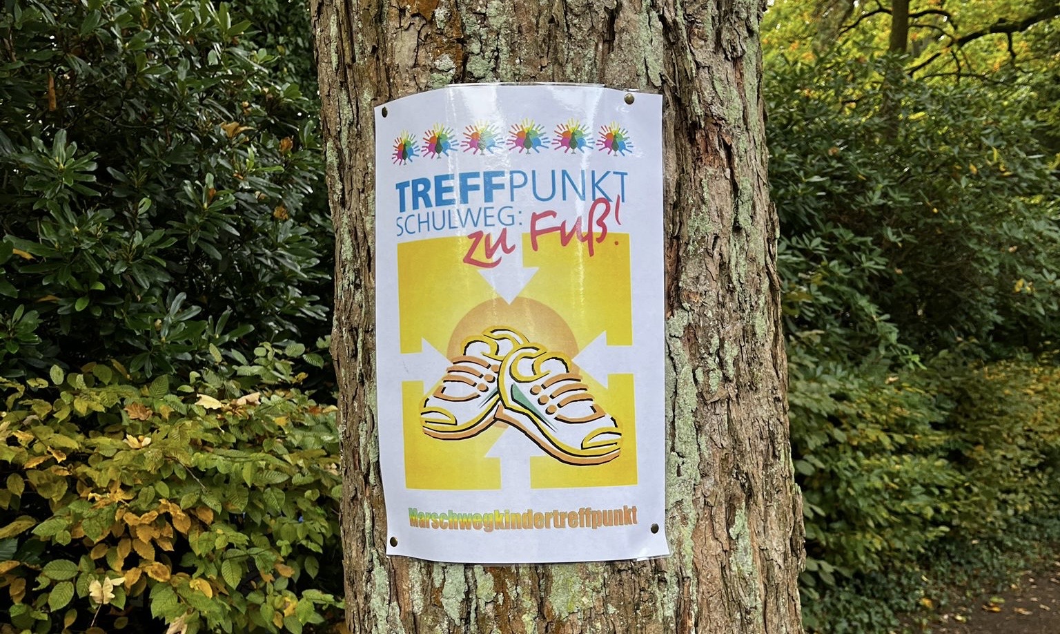 ➡ Lassen Sie Ihre Kinder an den gekennzeichneten Treffpunkten aussteigen! Von dort können sie gemeinsam mit anderen Kindern den letzten Weg zu Fuß zurücklegen. Die Treffpunkte sind gut sichtbar mit bunten Plakaten markiert.