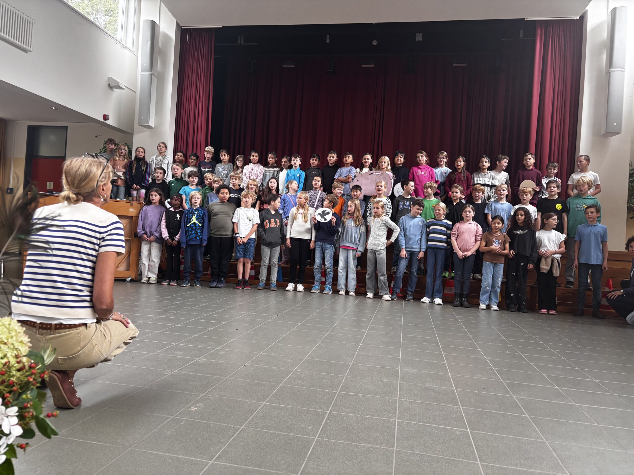 Auch musikalisch hatte die Vollversammlung etwas zu bieten. Der Chor der vierten Klassen sang unter der Leitung von Frau Tamm ein englisches Lied, das mit visueller Unterstützung begleitet wurde und für große Begeisterung sorgte.