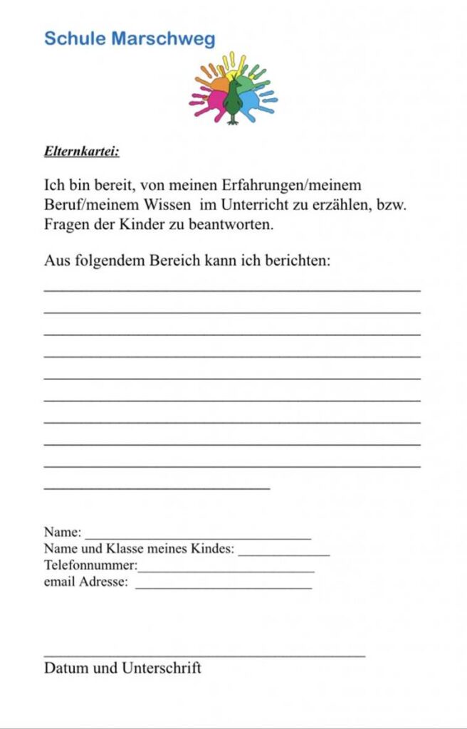 Gern würden wir auch von Ihnen als Eltern mit Ihrem unterschiedlichsten Expertenwissen in den verschiedensten Bereichen profitieren!
